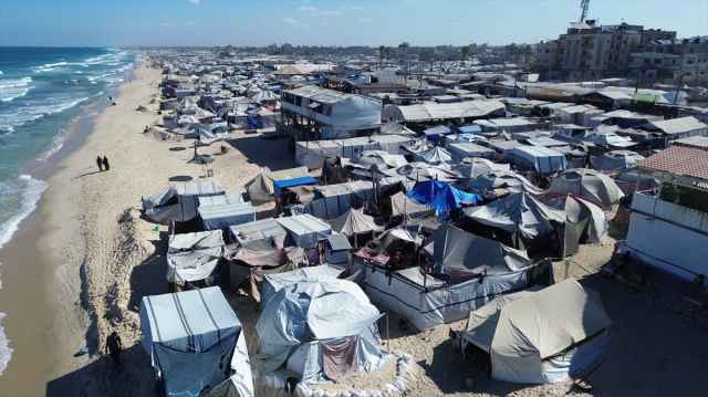 Öte yandan, El-Mevasi bölgesindeki çadırlar havadan görüntülendi.